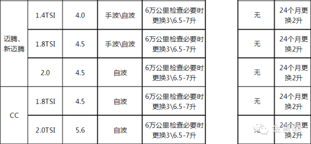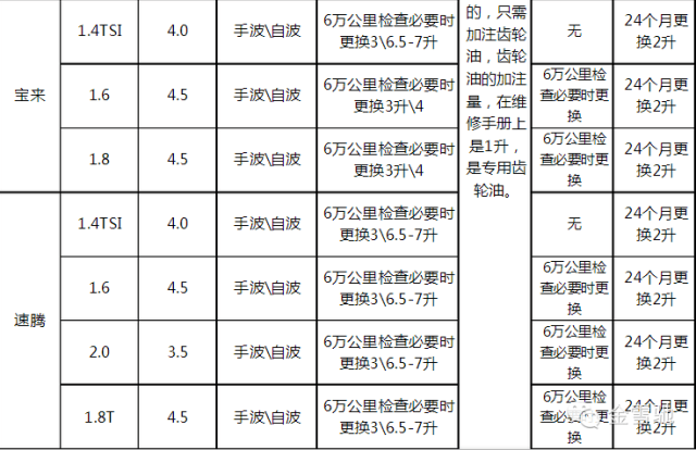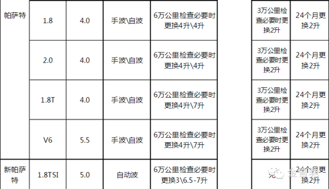 六:大众汽车机油加注量大全