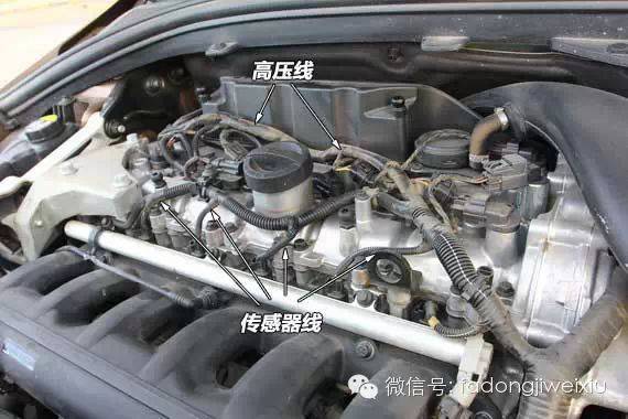 取下发动机装饰罩可以看到点火高压线
