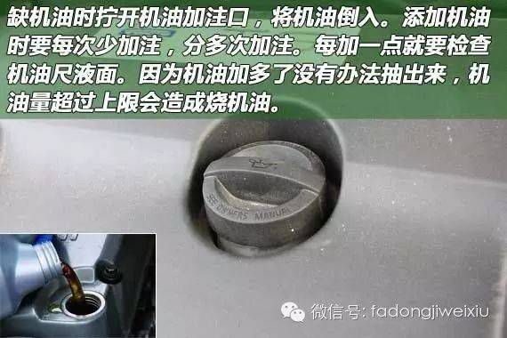 加注机油则通过引擎上的机油加注口完成,在添加机油时要注意添加量,不要一次加注过多,加多了机油超过上限是没法抽出来的。分多次添加,每次添加后通过机油尺查看机油液面高度。机油添加过量也对车辆有害。