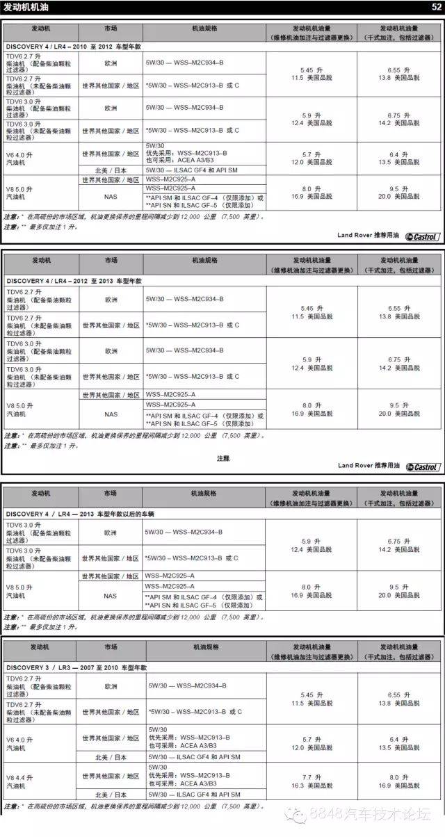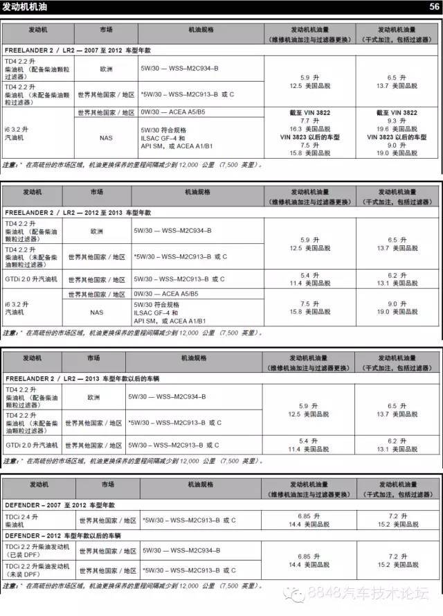 四、路虎车型机油标量