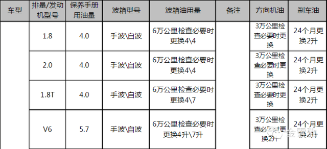 五、新款奥迪系列机油加注量参照表