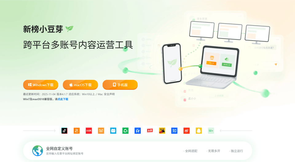 50+自媒体账号管理:支持50+自媒体账号的同时登录,告别账号登录的反复切换,账号多且散的问题